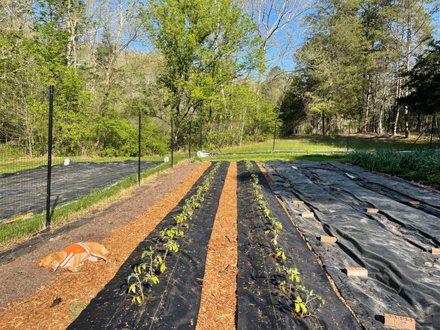Whew! What a week to be a farmer. Even though our bodies are still recovering from planting onions, planting was the main focus again this past week. Over the last several days we planted more lettuce, more green onions, more tomatoes, cherry tomatoes and red potatoes. We also started prepping our pepper rows by cutting down the cover crop. This will be a great source of green manure for the beds. Trellising the cucumbers in the high tunnel was also checked off the list. This is the first year for these to be planted in the high tunnel and they are doing great. Believe it or not, but we have baby cucumbers! When everything seems to go as planned, there is always a hurdle to overcome. What's the most important resource to a farm? Water! Our water pump busted! Water was gushing everywhere! With no rain in sight, replacing the pump is very high on the to do list. Make sure to mark your calendars for April 18th and join us at the Dixie Lee Farmers' Market. Our booth will be open from 9am-12pm, where you can purchase wonderful produce to eat and lovely plants to plant in your own garden.